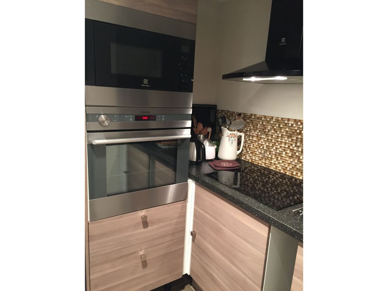 Zwei Schlafzimmer, eines davon mit einem Doppelbett. Das zweite Schlafzimmer hat ein Doppelbett und ein Einzelbett. Im Wohnzimmer befindet sich eine Doppelschlafcouch. Zwei Badezimmer, eines mit Badewanne und Dusche und eines mit Dusche und Toilette. Separate Toilette.