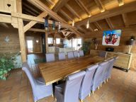 Im ersten Stock ein geräumiges (ca. 45 m²) Wohn-/Esszimmer mit Fernseher, DVD-Player, Wi-Fi, Kamin und Essecke. Zweites Wohnzimmer im Erdgeschoss auch mit Fernseher mit DVD-Player. Im ersten Stock Küche mit Mikrowelle, Elektroherd, Geschirrspüler und amerikanischem Kühlschrank. Sauna. Südterrasse mit Außenwhirlpool. Raum mit Waschmaschine und Trockner. Skiabstellraum mit Skischuhtrockner.