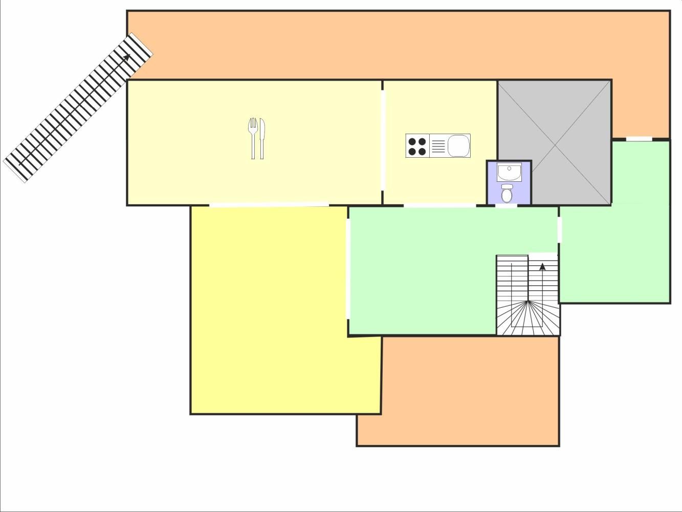 Die Zwischengeschosse sind über eine Leiter erreichbar und haben eine begrenzte Kopffreiheit, so dass es nicht möglich ist, aufrecht zu stehen.
