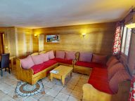 Gemütliches Wohnzimmer mit schöner Sitzecke mit Doppelschlafcouch, Fernseher, Kamin und Essecke. Gut ausgestattete offene Küche mit vier Kochplatten, Backofen, Mikrowelle, Kaffeemaschine (Filter), Wasserkocher, Kühlschrank und Geschirrspüler. Balkon mit fantastischem Blick auf die Lifte und Pisten von Les Arcs.
