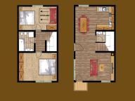 Das Chalet erstreckt sich über zwei Etagen und der Eingang ist über zwei Stufen erreichbar.
