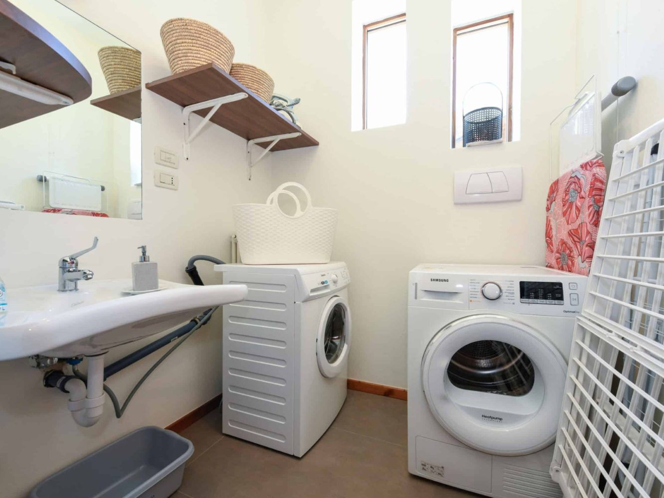 Es gibt auch einen Keller mit Skiraum mit Skischuhtrockner und einen Waschraum mit Waschmaschine, Trockner und Bügeleisen.