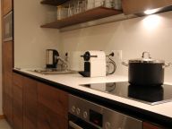 In der Wohnung befindet sich im Erdgeschoss ein geräumiges Wohnzimmer (ca. 60 m²) mit Sitzecke, Fernseher, Essecke und voll ausgestatteter offener Küche mit Herd, Kühlschrank mit Gefrierfach, Backofen, Mikrowelle, Spülmaschine, Nespresso-Kaffeemaschine, Wasserkocher und Toaster. Durch eine Tür in der Küche gelangt man in die Halle des Chalets. Im Chalet finden Sie im Erdgeschoss ein geräumiges Wohnzimmer (ca. 100 m²) mit Sitzecke, Fernseher, österreichischem Ofen, großer Essecke und voll ausgestatteter offener Küche mit Herd, Kühlschrank mit Gefrierfach, Backofen, Mikrowelle, Geschirrspüler, Nespresso-Kaffeemaschine, Wasserkocher und Toaster. Außerdem gibt es einen Saunaraum mit einer Dusche und einer separaten Toilette. Vom Wohnzimmer aus haben Sie Zugang zur Terrasse (teilweise überdacht).