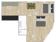 Ein Schlafzimmer mit einem Doppelbett und ein Schlafzimmer mit einem Doppelbett und einem ausklappbaren Einzelbett darüber. Badezimmer mit Dusche. Separate Toilette.