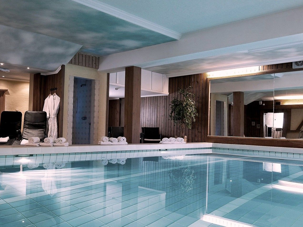 Die 2022 teilweise renovierten Wohnungen verfügen über eine einladende Lobby mit Sitzecke, Rezeption und Hallenbad. Ein Wellnessbereich mit finnischer Sauna und Dampfbad ist nach Reservierung verfügbar. Abends können Sie sich in Kathrins Bar entspannen oder eine Partie Tischtennis oder Tischfußball im Spielzimmer spielen.