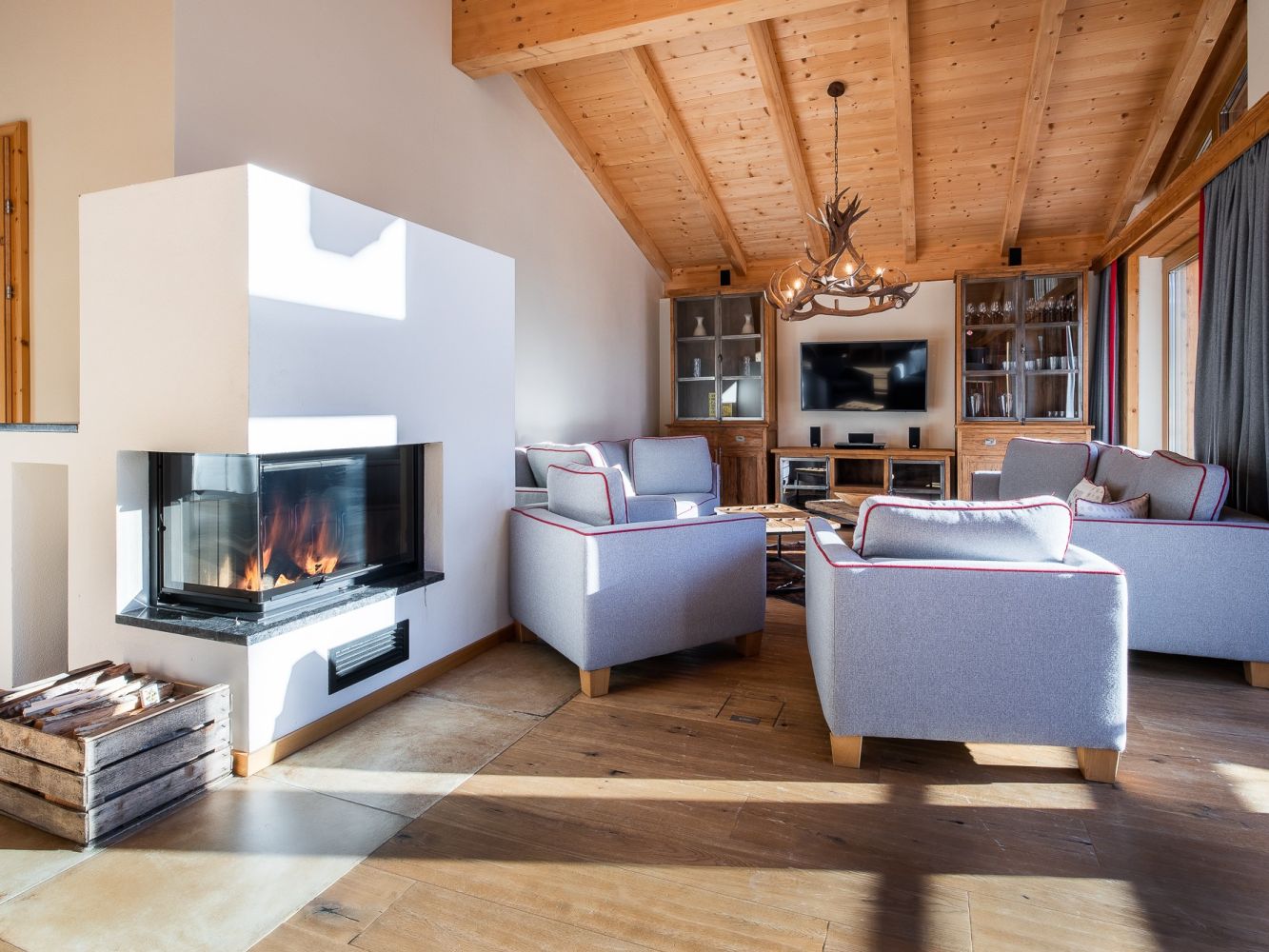Geräumiges, gemütlich eingerichtetes Wohnzimmer (in der obersten Etage) mit Sitzecke, Flachbildfernseher (mit niederländischen Kanälen), Kamin und Essecke. Voll ausgestattete offene Küche mit u.a. Elektrokochplatten, Backofen, Mikrowelle, Kühlschrank, Geschirrspüler, Toaster, Kaffeemaschine (Filter und Espresso) und Wasserkocher. Vom Wohnzimmer aus haben Sie Zugang zu einem großen Balkon. Zur weiteren Ausstattung dieses Chalets gehören eine private Sauna, ein Skiraum, vier Parkplätze in der Garage und Internetzugang (Wi-Fi).
