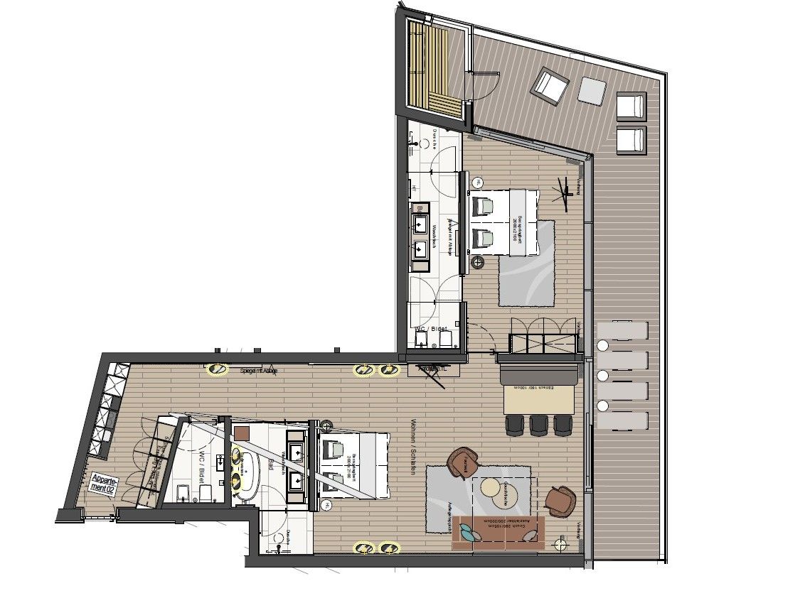 Es gibt auch eine Panoramasauna und eine Terrasse.