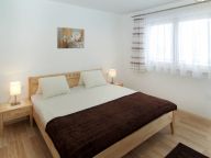 Im ersten Stock befinden sich drei Schlafzimmer, eines davon mit einem Doppelbett. Zwei Dreibettzimmer mit je einem Doppelbett und einer Schlafcouch für eine Person. Zwei Bäder, jeweils mit Dusche und Toilette.