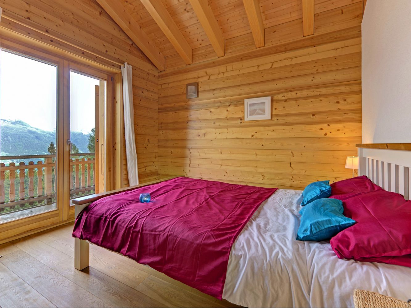 Das Chalet liegt direkt an der Piste und ist trotzdem unproblematisch zu Fuß erreichbar. Es ist geräumig und bietet mit der Sauna ein tolles Extra. Der Blick in´s Tal und auf die umliegenden Berge ist grandios